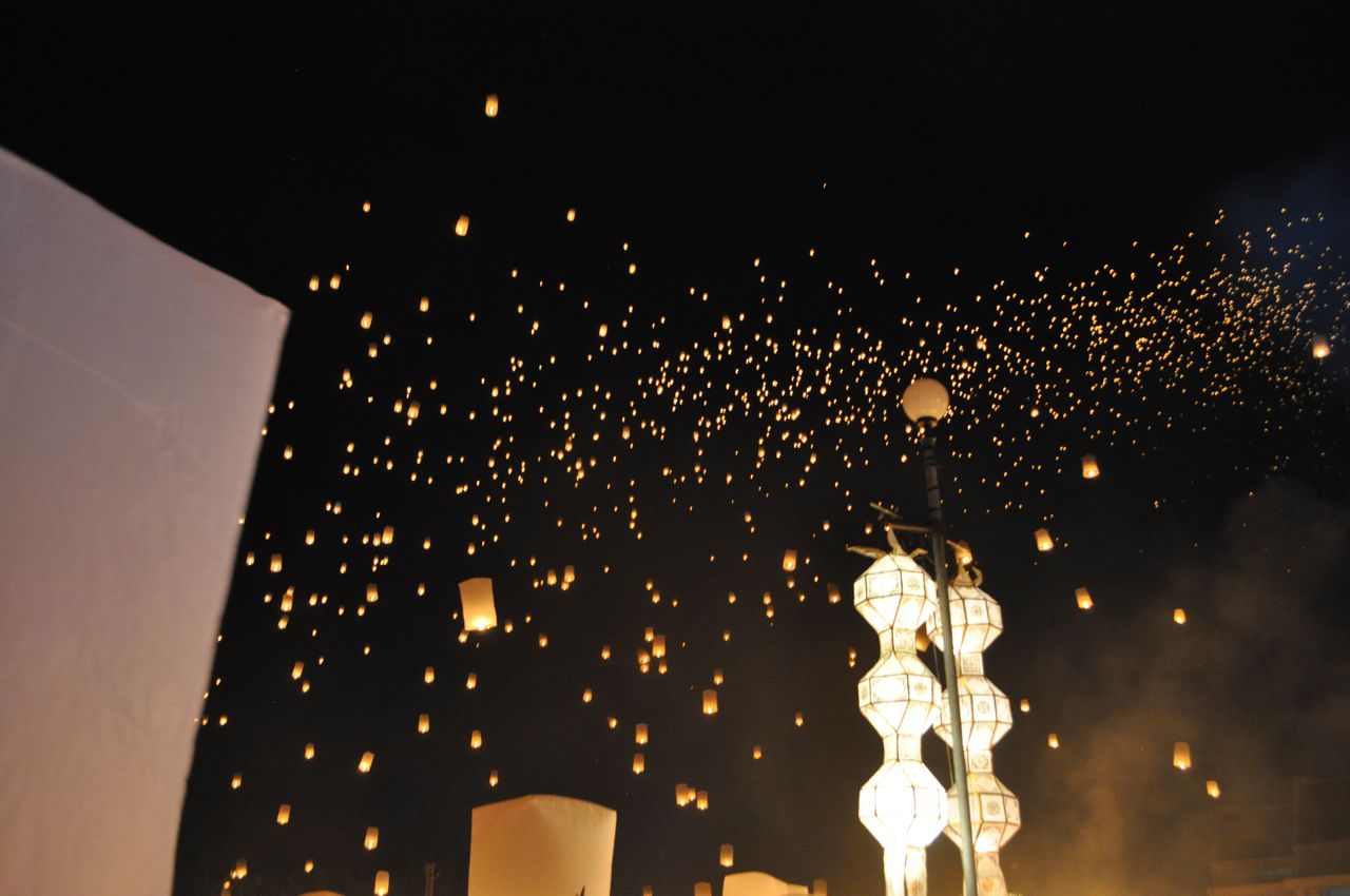 Thousands of lanterns fill the sky at the monk’s blessing, and music fills the air in celebration as people laugh and marvel at the night sky filled with lanterns.  It is a very beautiful and moving moment.