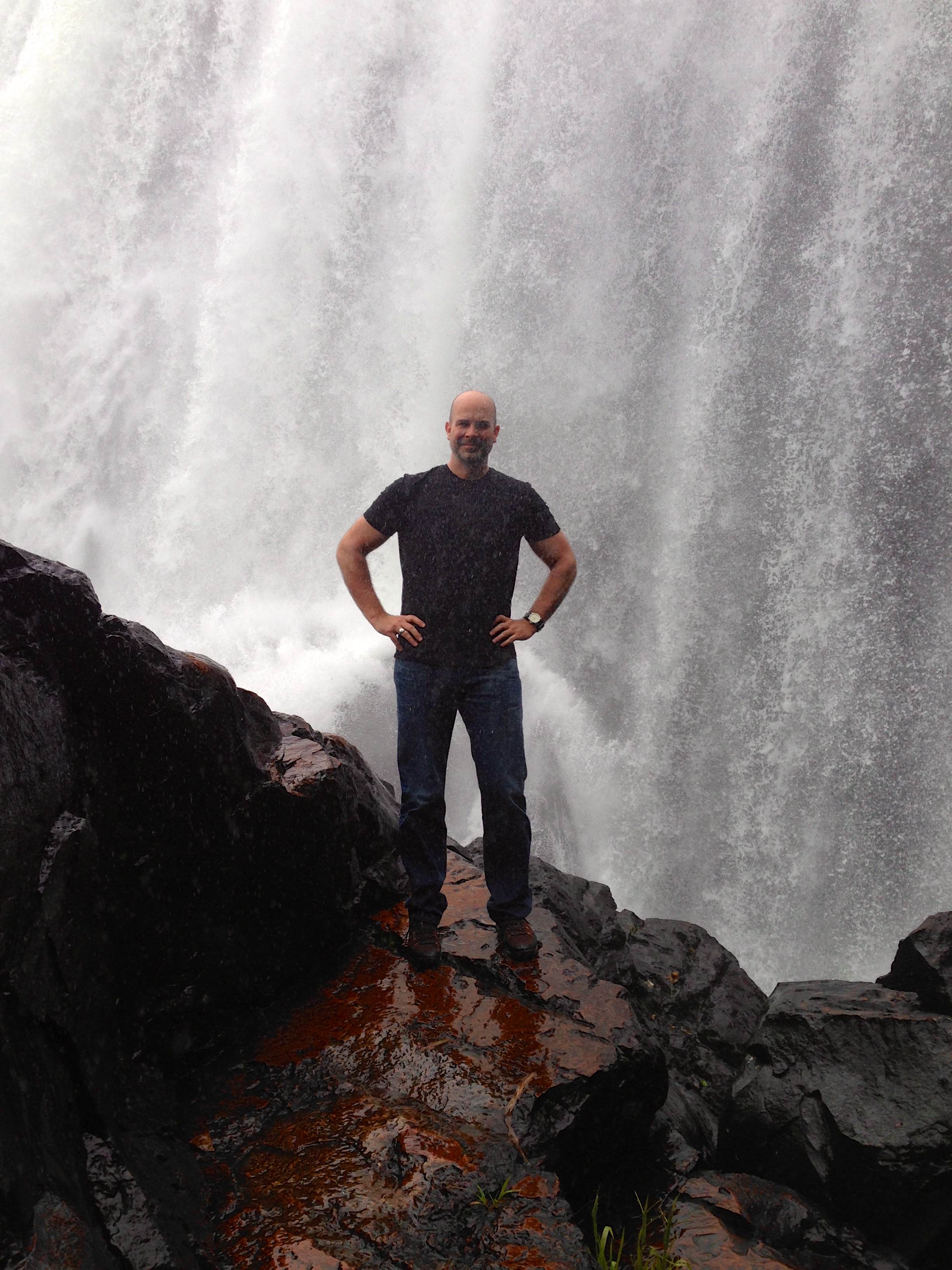 Standing in the gail force winds of the boiling point of Chishimba Falls outside of Kasama.